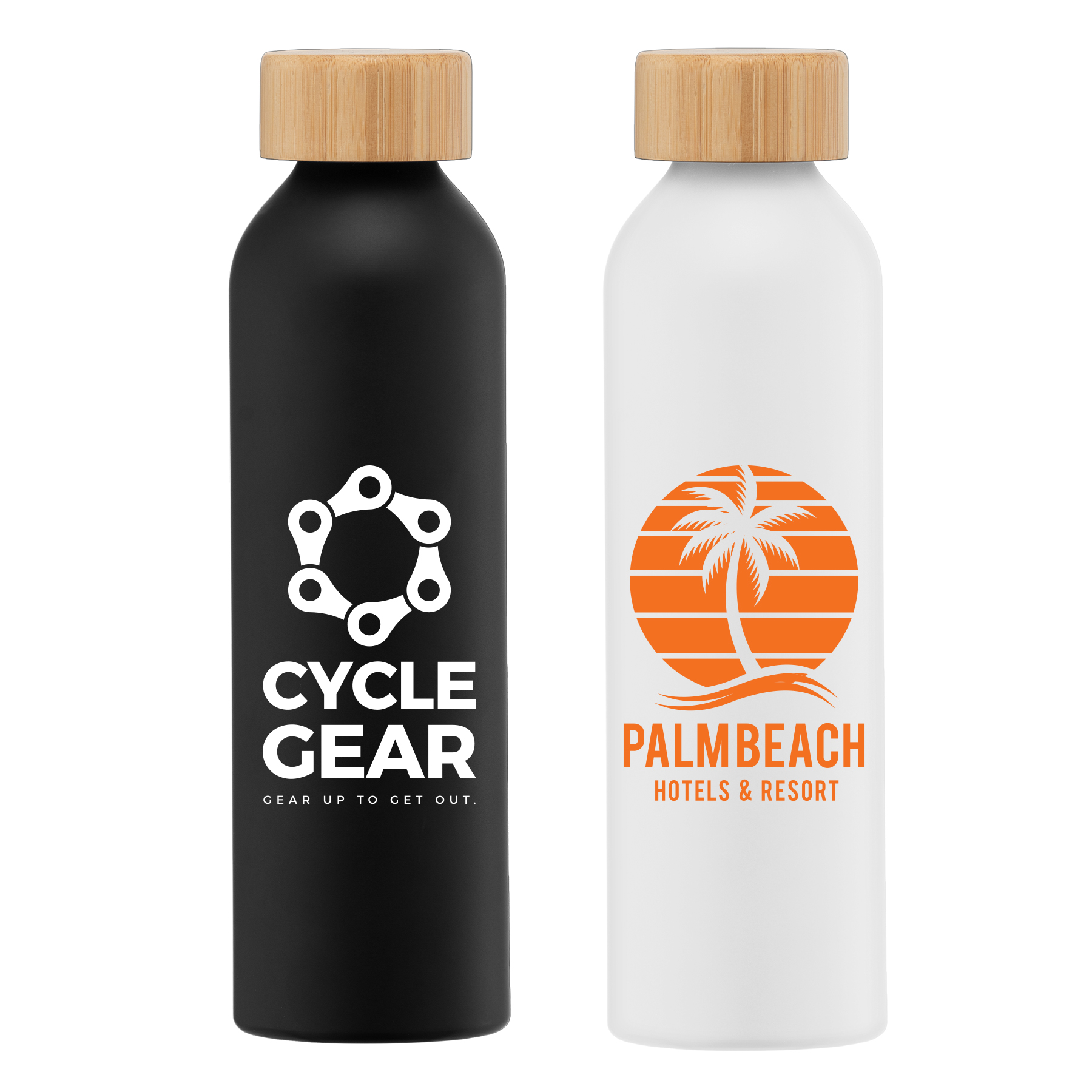 Unsere Paguera – 650 ml Aluminiumflasche mit Bambusdeckel besticht durch ihr modernes Design und ist die ideale Wahl für umweltbewusste Kunden. Diese besondere Trinkflasche, auch bekannt als „Leith Aluminiumflasche“, vereint Stil und Nachhaltigkeit. Der Bambusdeckel unterstreicht den nachhaltigen Charakter und spricht besonders Kunden an, die Wert auf umweltfreundliche Produkte legen. Die Flasche ist einwandig, besteht aus Aluminium und verfügt über einen schraubbaren, auslaufsicheren Bambusdeckel. Die matte Oberfläche bietet die perfekte Grundlage für Logos, Werbebotschaften und mehr. Wir empfehlen, die Flasche ausschließlich von Hand zu reinigen.