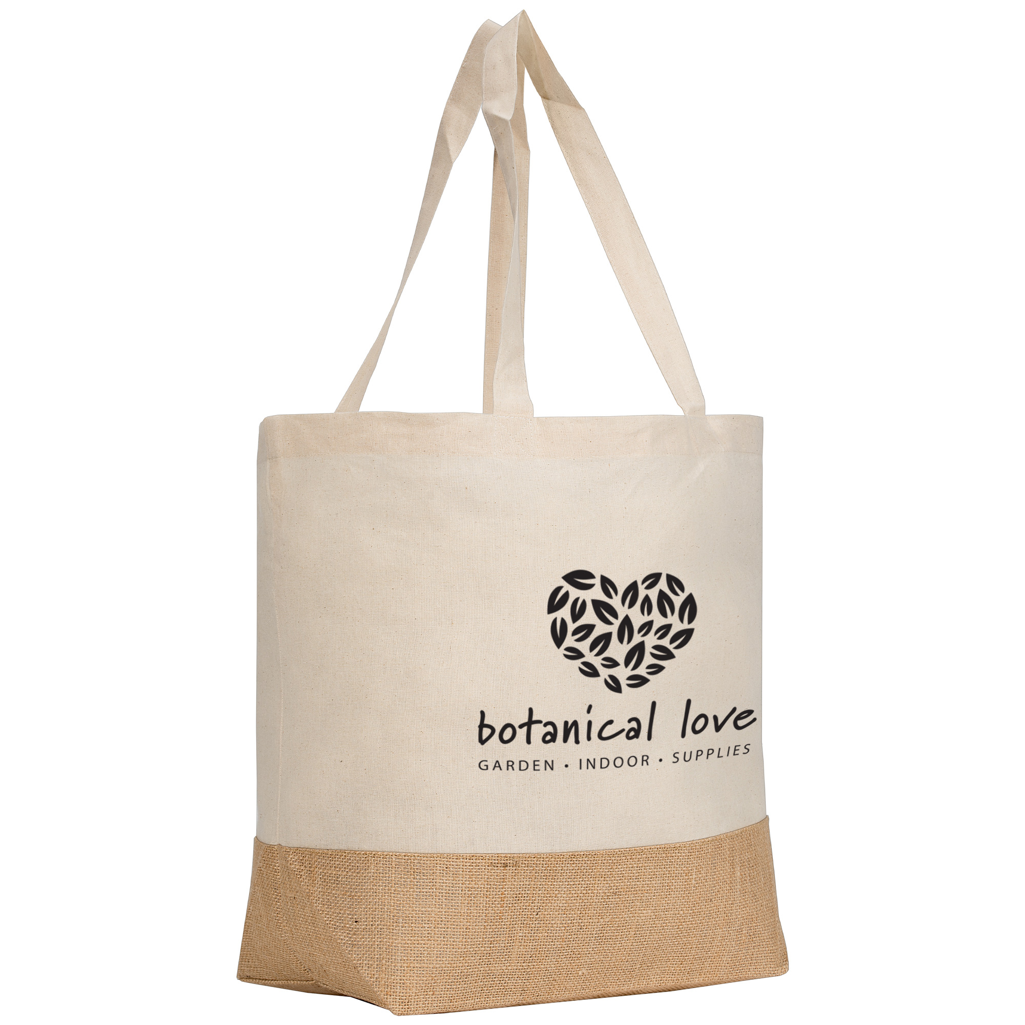 Die „Cala“ Einkaufstasche aus recycelter Baumwolle und Jute (140 g/m²) macht jeden Einkauf zum Vergnügen. Mit einem offenen Hauptfach bietet sie einfachen Zugriff auf alle wichtigen Gegenstände. Die Tasche besteht aus einer cleveren Kombination von 70 % recycelter Baumwolle, 30 % recyceltem Polyester und stilvollen Jute-Einsätzen, die natürliche Elemente mit modernem Design vereinen. Mit einem großzügigen Volumen von 20 Litern und einer Tragkraft von bis zu 10 kg ist sie der ideale Begleiter für den Alltag.