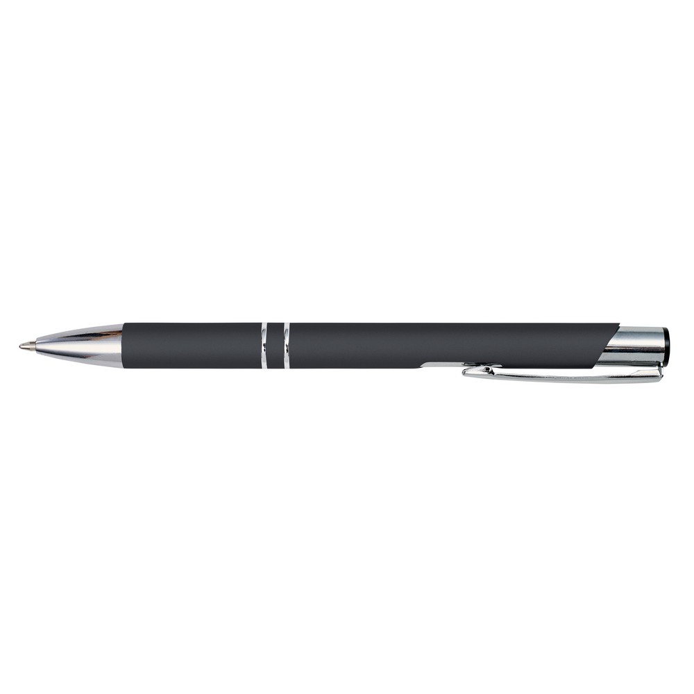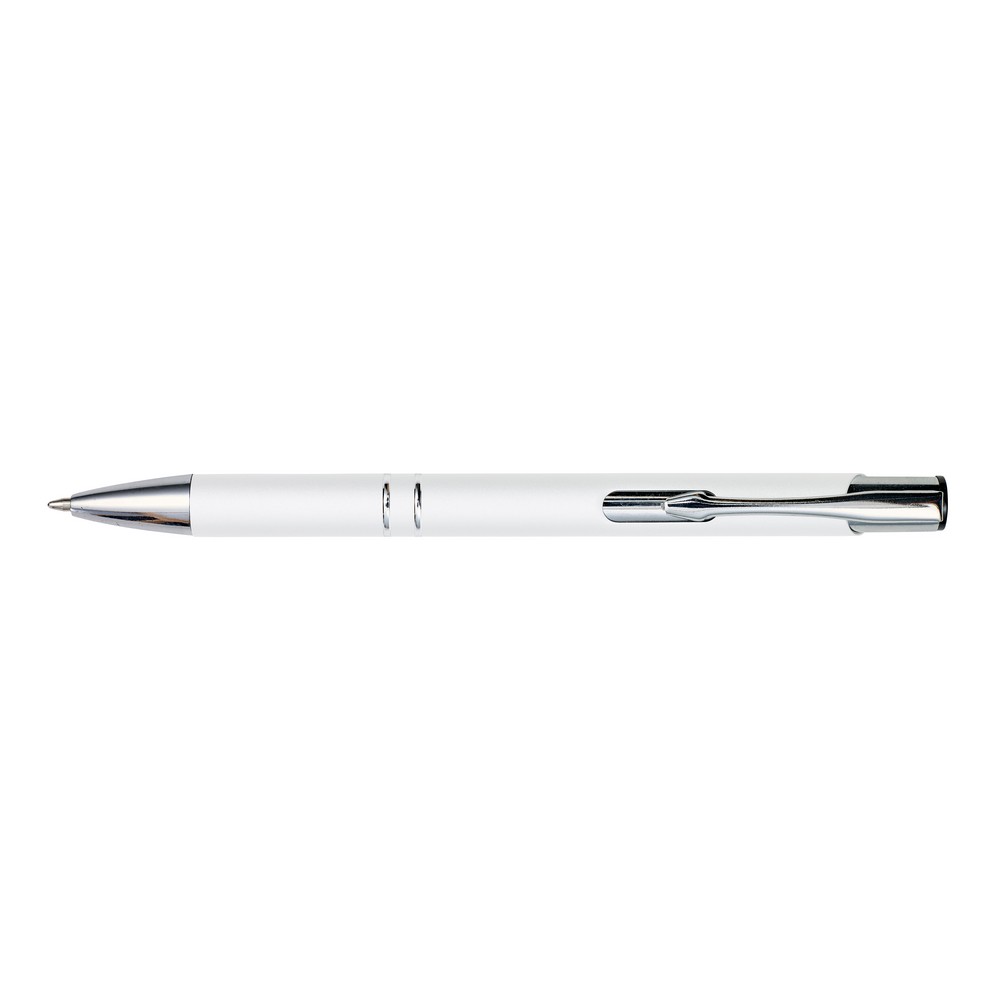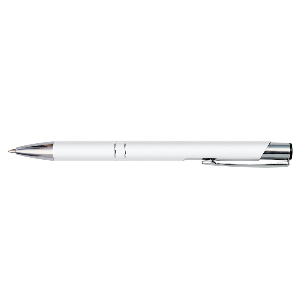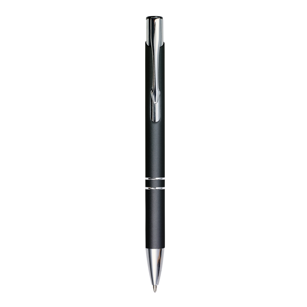 Entdecken Sie den Kugelschreiber „Helga“ – ein Meisterwerk der Eleganz und Funktionalität. Mit seiner gummierten Oberfläche und den silbernen Elementen liegt er angenehm in der Hand und verleiht jedem Schriftstück eine besondere Note. Nach der Gravur erstrahlt er in edlem Silber. Erhältlich in den klassischen Farben Schwarz, Weiß und Dunkelblau, passt er perfekt zu jedem Stil. Gefertigt aus hochwertigem Aluminium, bietet er eine langlebige Qualität. Mit einer blauen Mine ausgestattet, ist er der ideale Begleiter für den Alltag. Perfekt für Einzelbestellungen oder als Großbestellung mit 500 Stück pro Karton.