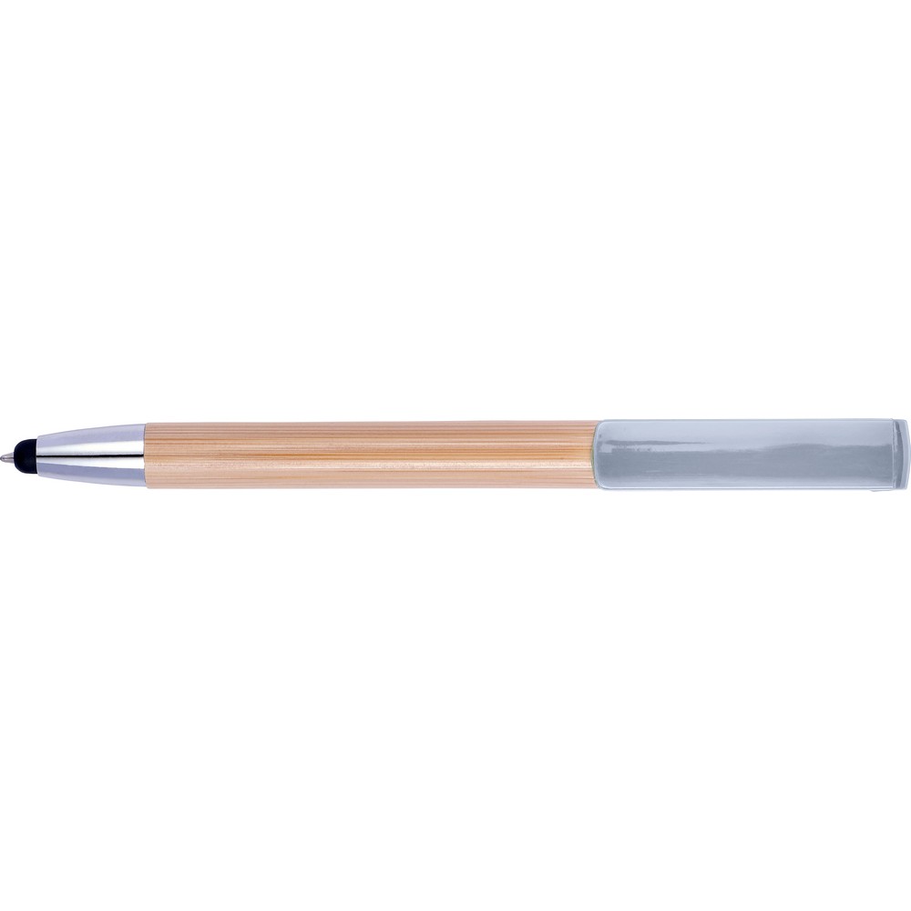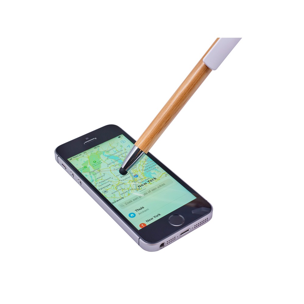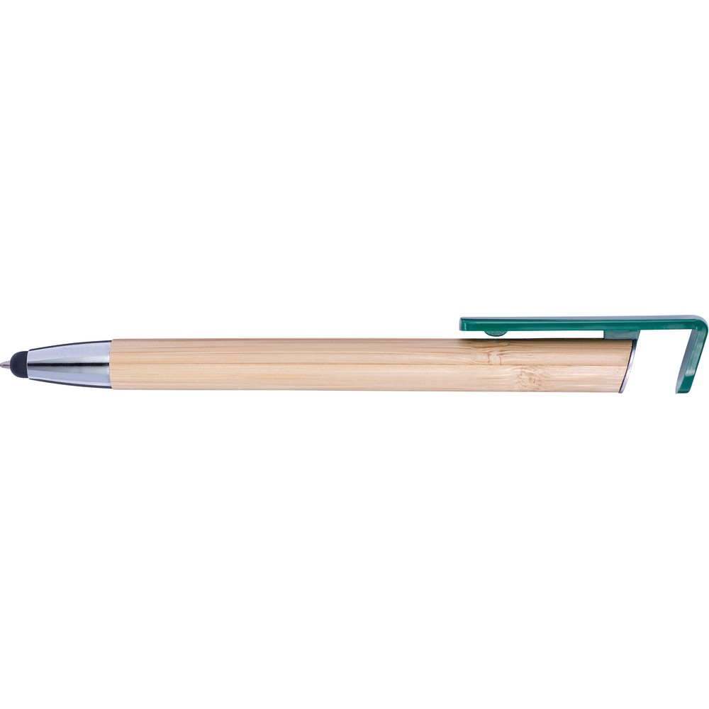 Der Touchpen Kugelschreiber „Melissa“ ist ein vielseitiges und stilvolles Schreibgerät. Mit seinem speziellen Clip, der als Handy-Ständer verwendet werden kann, ist er der perfekte Begleiter für unterwegs. Der Kugelschreiber verfügt über ein Gehäuse aus Bambus und farbige Kunststoffteile, die ihm eine moderne Optik verleihen. Egal ob zum Schreiben oder zum Bedienen des Touchscreens, der Touchpen Kugelschreiber „Melissa“ ist ein praktisches und elegantes Accessoire für jeden Anlass.