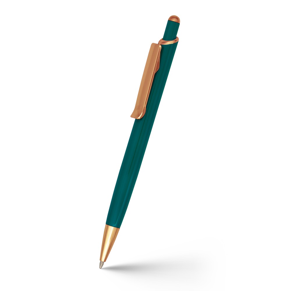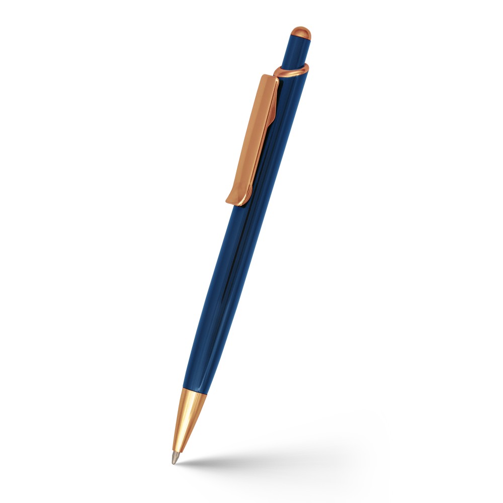 Entdecken Sie den eleganten Kugelschreiber „Ylavor“ – ein Meisterwerk aus Aluminium, das Stil und Funktionalität vereint. Mit seinem farbigen Schaft und den glänzenden Details in Roségold zieht er alle Blicke auf sich. Der „Ylavor“ schreibt in einem satten Blau und offenbart nach der Gravur eine edle goldene Farbe. Erhältlich in verschiedenen Farben wie Gold, Grün, Schwarz, Weiß, Burgundrot und Dunkelblau, passt er perfekt zu jedem Anlass. Mit einer Größe von Ø1 x 14 cm und einem Gewicht von nur 14 g liegt er angenehm in der Hand. Ideal für den täglichen Gebrauch oder als stilvolles Geschenk.