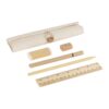 Erleben Sie mit unserem Schulset in stilvollem Beige den perfekten Imageträger für Ihre Marke. Dieses hochwertige Set, bestehend aus einem Bleistift, Kugelschreiber, Radierer, Spitzer und einem Lineal, ist nicht nur funktional, sondern auch ein echtes Statement. Der Einsatz von natürlichen Materialien wie Baumwolle, Holz und Papier unterstreicht Ihr Engagement für Nachhaltigkeit und fördert eine positive Markenidentität.