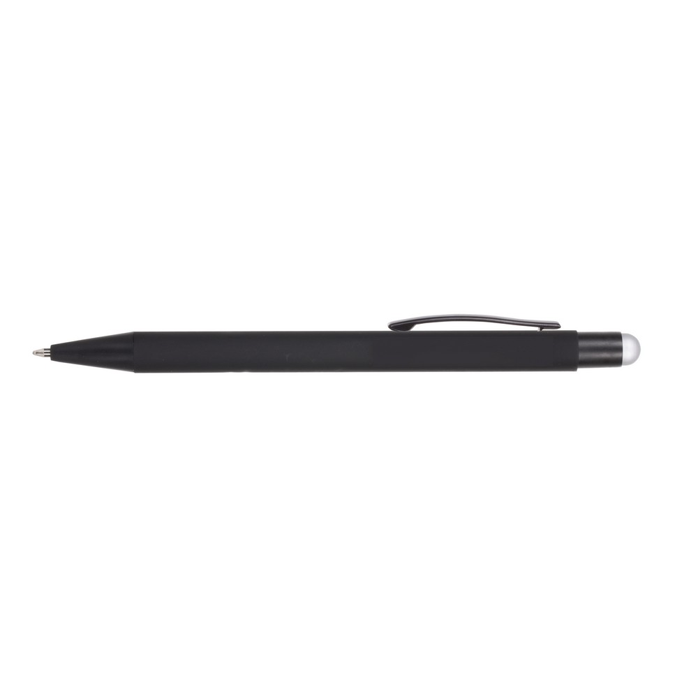 Der Touchpen Kugelschreiber „Simplen“ ist ein elegantes und praktisches Schreibgerät für den modernen Alltag. Mit seiner Kombination aus Kugelschreiber und Touchpen ermöglicht er ein müheloses Schreiben auf Papier und Touchscreens. Der schwarze Gummikörper liegt angenehm in der Hand und die gravierte Oberfläche passt perfekt zur Gummispitze. „Simplen“ ist der ideale Begleiter für alle, die Stil und Funktionalität schätzen.