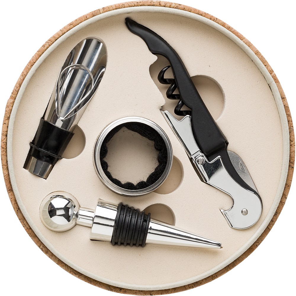 Entfalten Sie das volle Potenzial Ihrer Marke mit unserem exklusiven 4-tlg. Weinset, das in einer eleganten Korkbox präsentiert wird. Mit einem durchdachten Design und hochwertigen Materialien – Edelstahl, Kork und Silikon – ist dieses Weinaccessoire nicht nur praktisch, sondern auch ein wahrer Imageträger. Die edlen Komponenten, darunter ein Kellnermesser, ein Ring, ein Stopfen und ein Ausgießer, machen jedes Weinerlebnis unvergesslich und verleihen Ihrem Logo eine langfristige Präsenz.