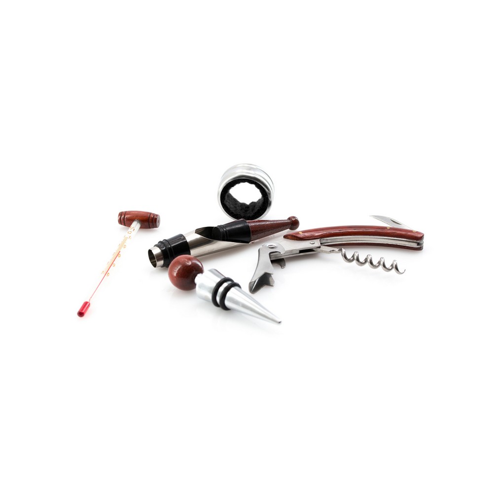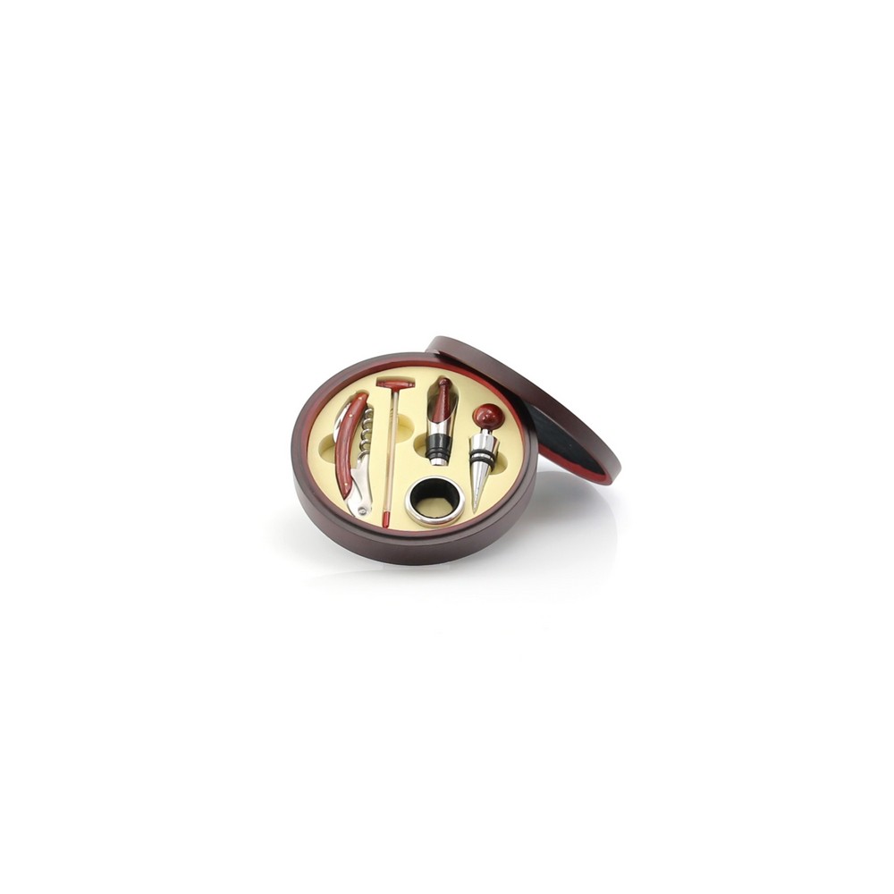 Entdecken Sie das exquisite Weinset „Kiew“, das in einer eleganten Holzbox präsentiert wird. Dieses 5-teilige Set umfasst einen praktischen Kellnermesser, einen stilvollen Ring, einen hochwertigen Stopfen, einen präzisen Weinausgießer und ein Thermometer, um den perfekten Genuss zu garantieren. Mit einem Durchmesser von 17 cm und einer Höhe von 3,5 cm ist es ideal für jeden Weinliebhaber. Das natürliche Holzdesign verleiht Ihrem Tisch eine edle Note. Perfekt als Geschenk oder für den eigenen Genuss – das Weinset „Kiew“ ist ein Must-Have für unvergessliche Weinabende.
